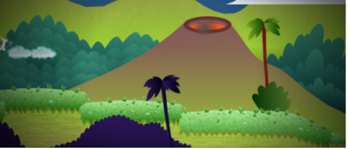 火山喷发,我们发现云可以盖住岩浆,我们用一朵云盖住,然后用另一朵云收集骨头