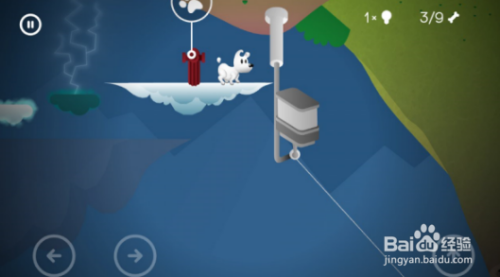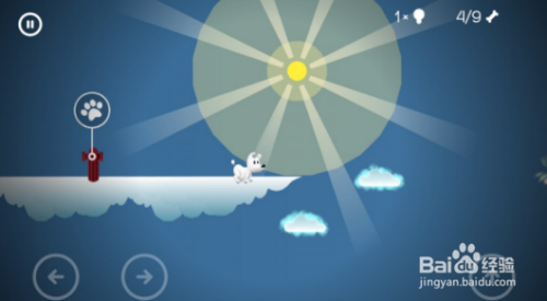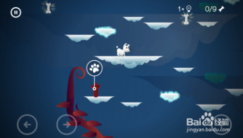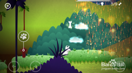 移动云朵,进行跳跃,乌云会有闪电,只要在没有闪电的时辰跳就可以,先跳到左边收集第一根骨头,然后往右边跳收集第二根