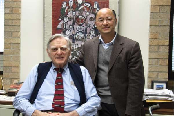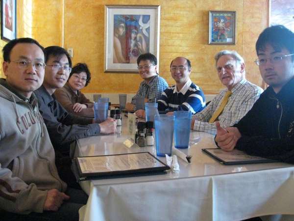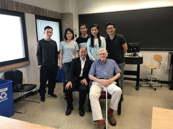 我在美国的学生不少,在麻省理工学院、斯坦福大学、加州大学伯克利分校、马里兰大学、佐治亚理工大学以及德州大学奥斯汀分校等都有,前后共 20 多位在做博士后研究,他们几乎都要去奥斯汀“朝拜”老师长教师,跟祖师爷合影留念。前年我又带了五六个学生和我儿子去看他。他出格欢快,坐在一个教室里面,跟我的学生们讲他的履历和观点,又一路吃饭,聊了足足有 4 个小时。