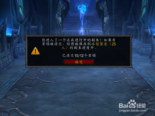 1、从暴风城或奥格瑞玛传送到晶歌丛林的达拉然,然后飞到冰冠碉堡门口;