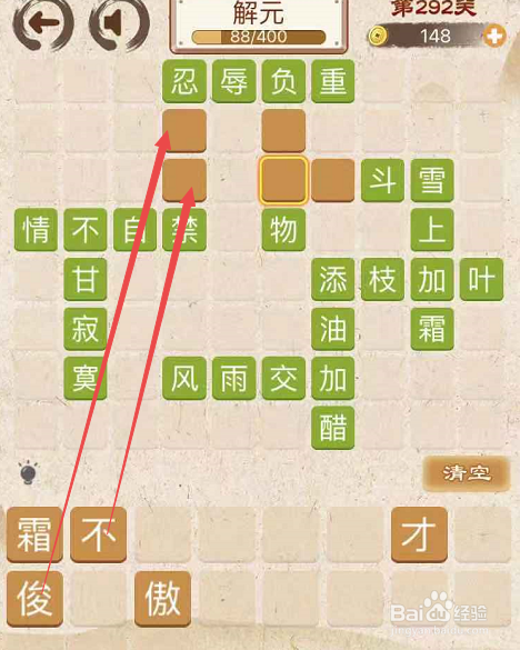 点击当作语消消消手游,起头第二百九十二关的挑战。首先,将底部的“寂寞”填在“不甘”之下,构成当作语“不甘寂寞”,然后将“辱”填在“忍”之后,将“重”填在“负”之后,构成当作语“忍辱负重”。