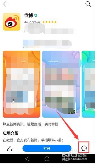 华为手机中,是如何给应用程序评分的呢,下面是给新浪微博评分的具体步调。