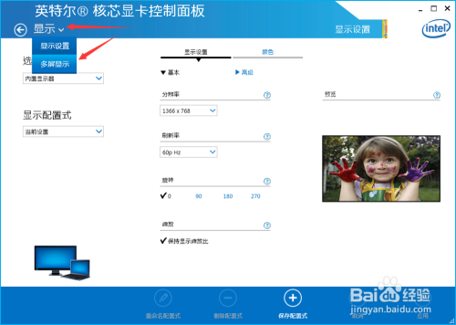 下面的对话框我们点击左上角的显示,会有多屏显示。我们选择多屏显示。