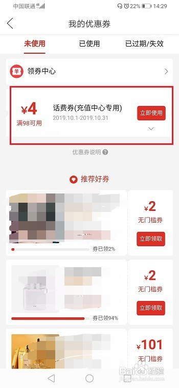 第三步进去我的界面,点击优惠券,如下图所示: