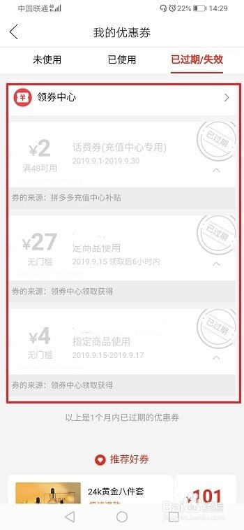 第五步若是退回的优惠券已颠末期了,点击已过时/掉效可以查看,如下图所示: