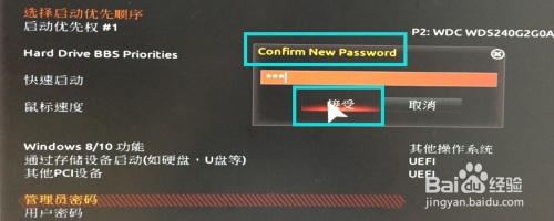 提醒再次输入密码,再次输入适才设置的密码,确定(两次输入要一致)就可以了,这样BIOS密码就设置完当作了。