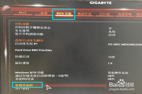 这时辰我们点击上方的选项卡,选择BIOS功能选项,