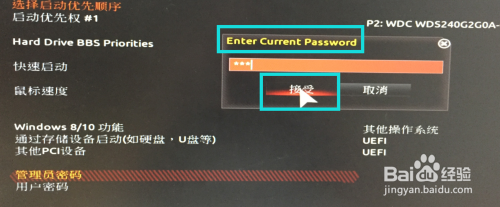会提醒输入当前密码,我输入已经设置的密码,确定;