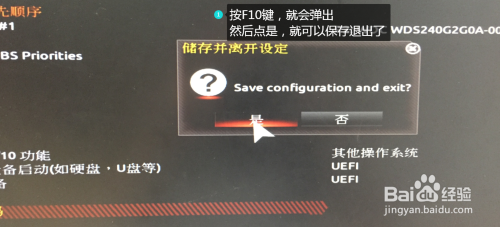 以上设置完当作今后,直接按下F10键,就会弹出保留设置并退出的选项;