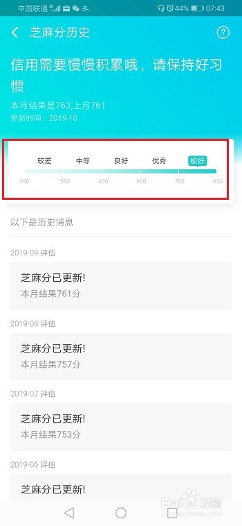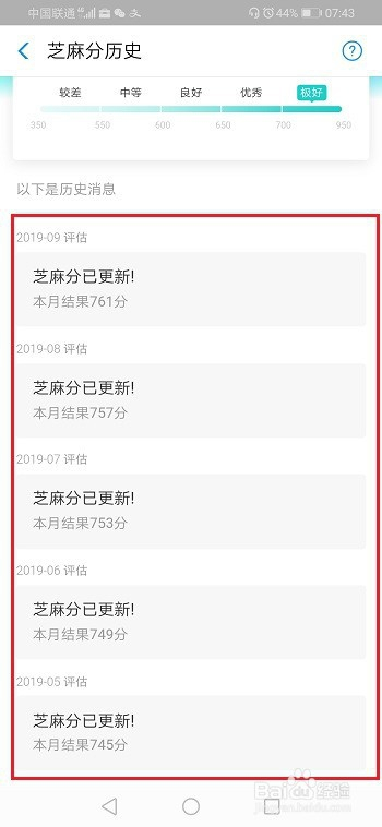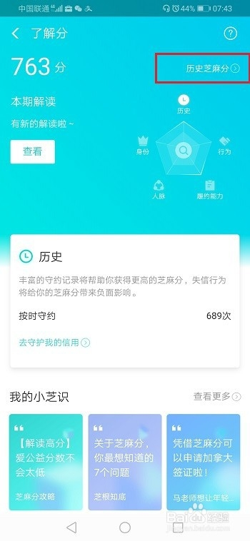 第四步进去汗青芝麻分界面,可以看到芝麻信用分变更记实,如下图所示: