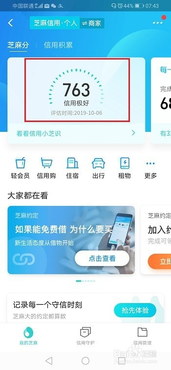 第二步进去芝麻信用之后,点击芝麻分,如下图所示: