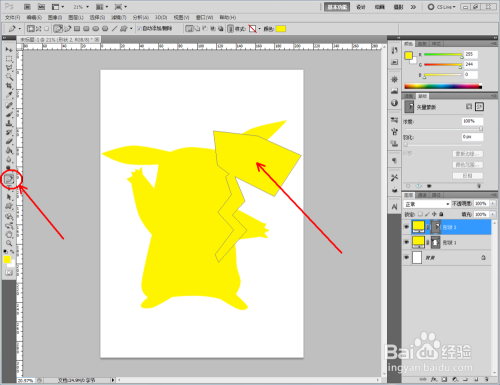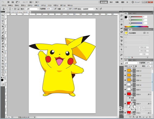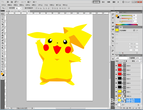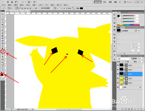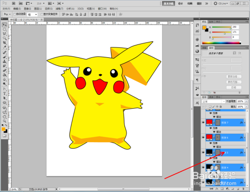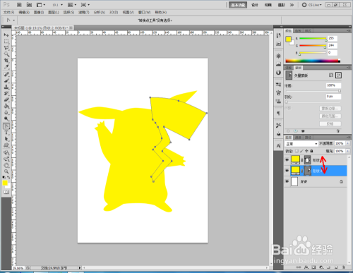 利用【钢笔东西】和【转换点东西】,完当作人物从头至尾部的绘制并调整好各图层间的前后关系;