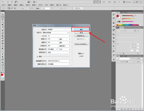 打开Photoshop CS5软件,按图示新建一个ps文档;
