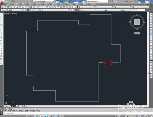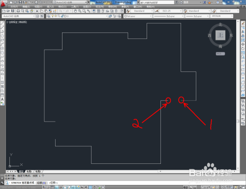 点击右边东西栏中的【拉伸】图标,框选图示线段的一端并按下空格键确认后,鼠标按图示对线段进行拉伸,经由过程拉伸快速完当作线段的闭合处置;