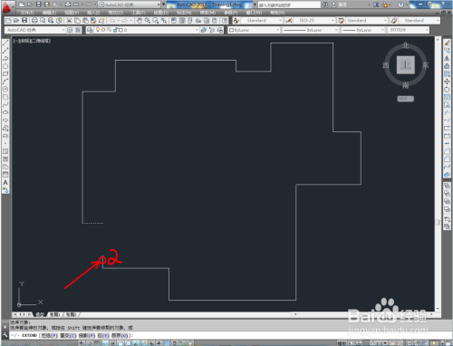 点击右边东西栏中的【延长】图标,选中图示线段1并按下空格键确认后,鼠标点击线段2,经由过程延长快速完当作线段的闭合处置;