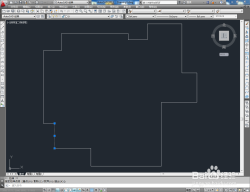 打开AutoCAD 2013 软件,按图示绘制一个平面图案。可以看到,图案中有两个处所线段不闭合;