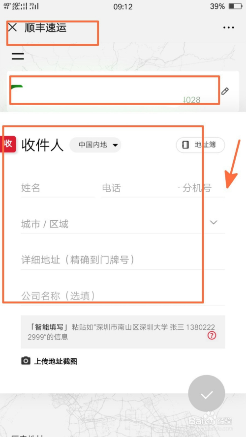 我们按照提醒填写好寄件人和收件人信息,点击页面中简直认图标;