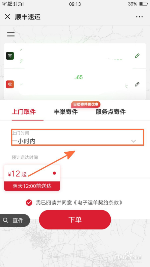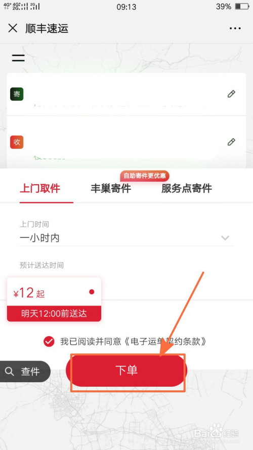 最后,我们接着点击选择页面中的下单键即可完当作寄件预约操作。