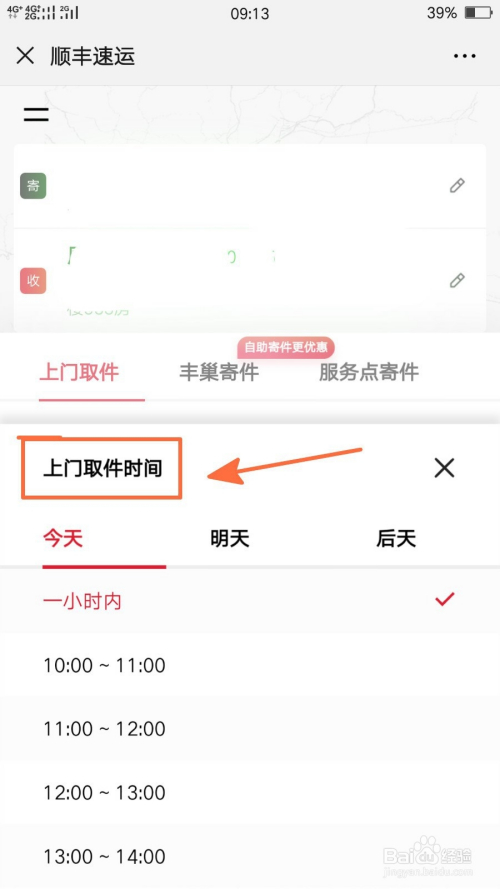 接着即可进入下一步操作,我们选择上门取件,选择上门时候;