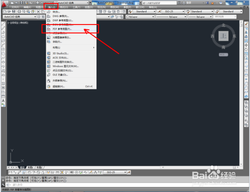 打开AutoCAD 2013软件,点击【插入】-【PDF参考底图】,选择图片页面后,点击【确定】;