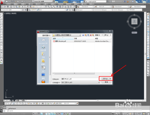 打开AutoCAD 2013软件,点击【插入】-【PDF参考底图】,选中要转换的pdf原件,点击【打开】;