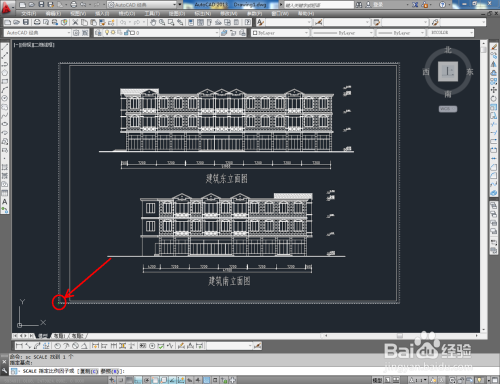 鼠标点击作图区域确定一个定点后,在号令栏输入比例因子:1并按下空格键确认;