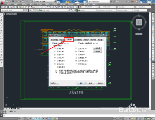 鼠标右键点击图示位置-【设置】-【对象捕获】,按照需要设置好对象捕获各项;