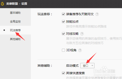接着点击【弄法保举】,把启动模式选为【窗口】。
