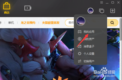 之后在右上角点击头像,接着点击【我的应用】。