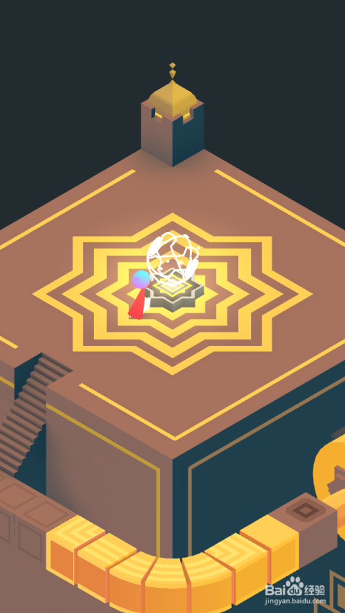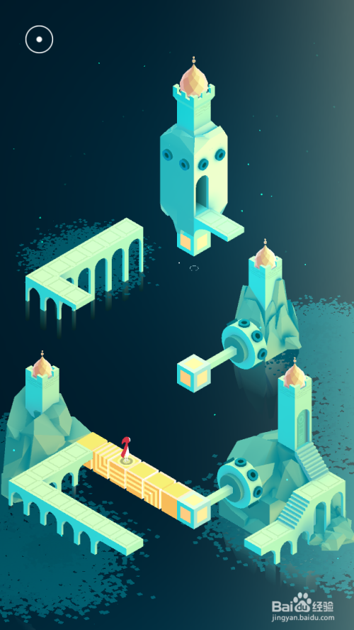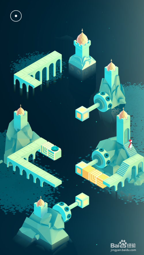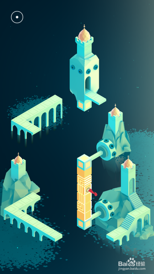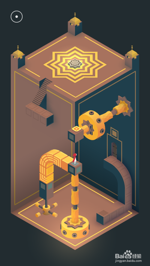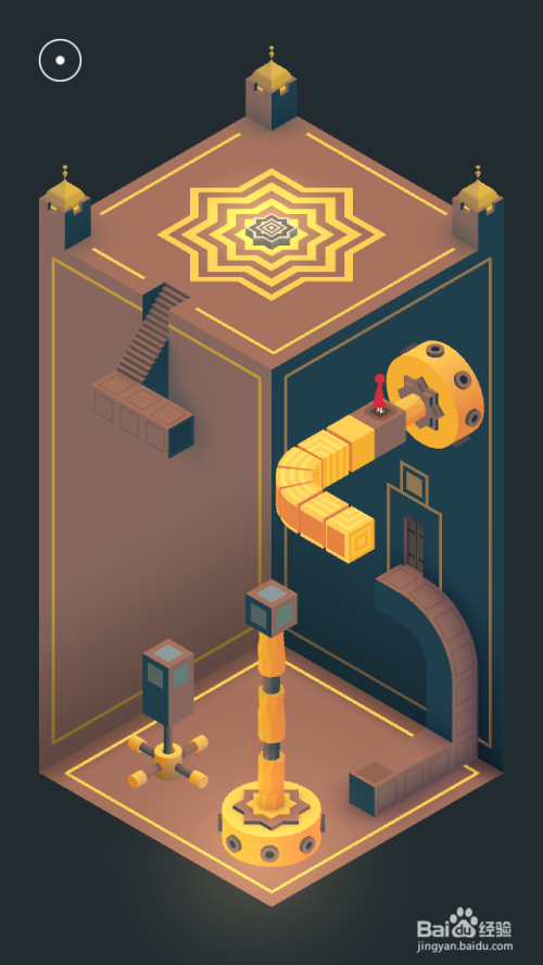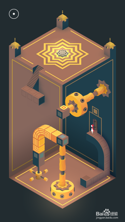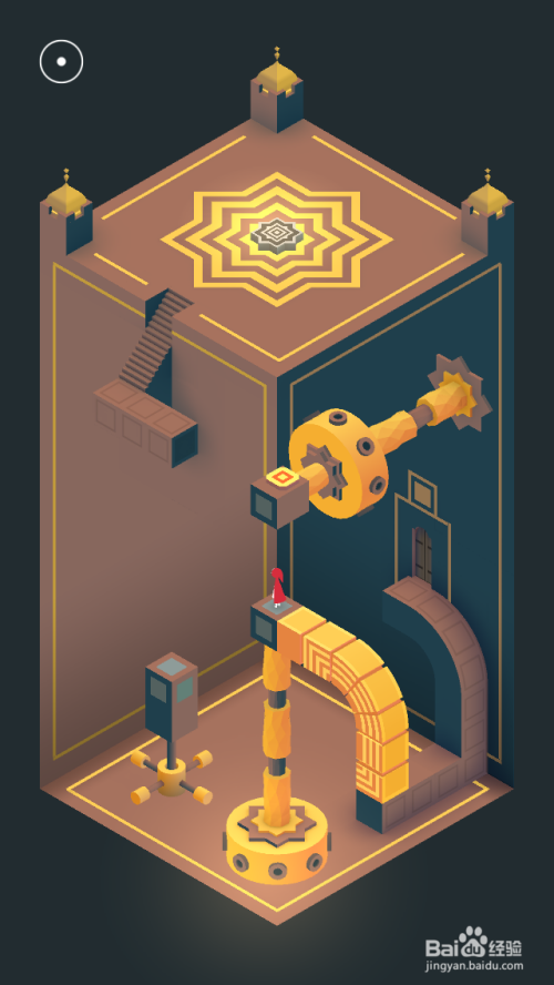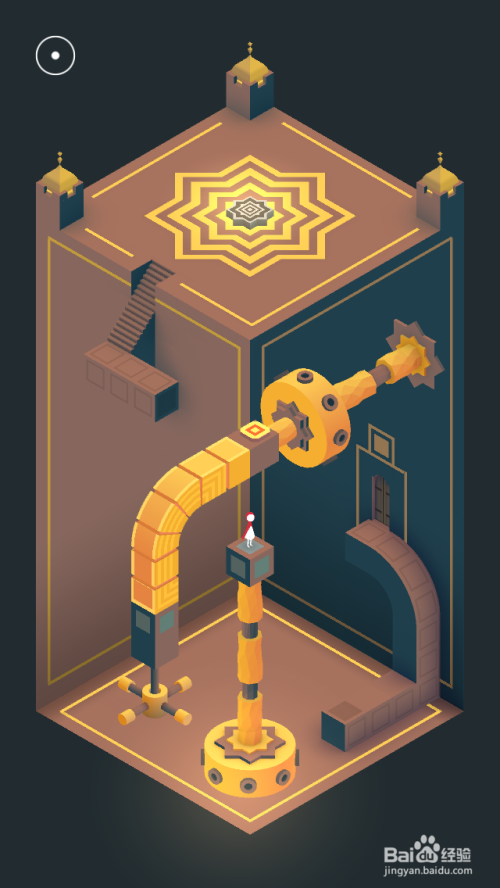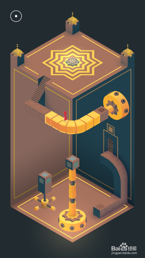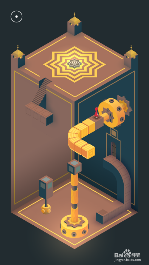 动弹下方与中心转轮,将原先一段黄色道路与女儿脚下的黄色道路归并。此后,建筑物发生转变,下方转轮下沉,上方升起一扇门。