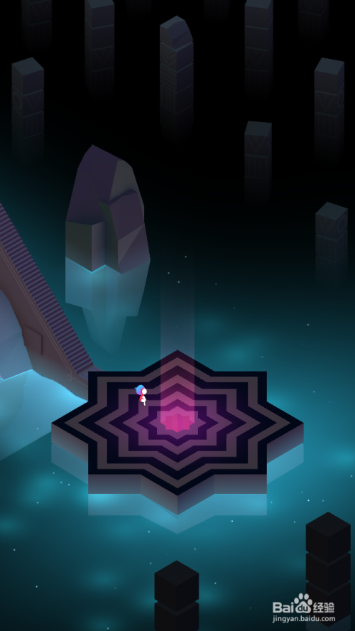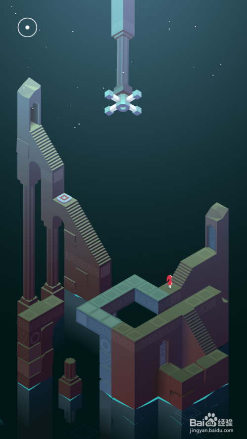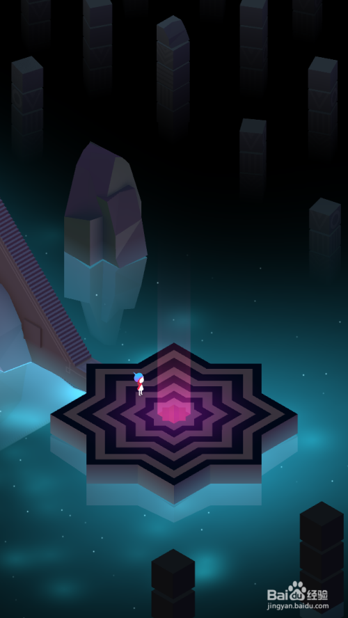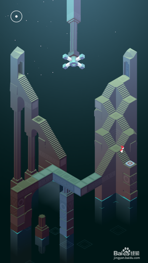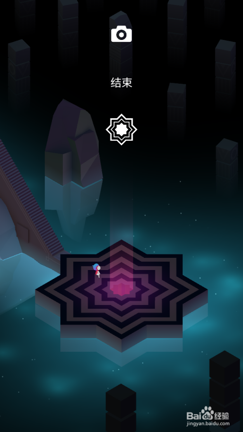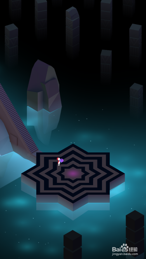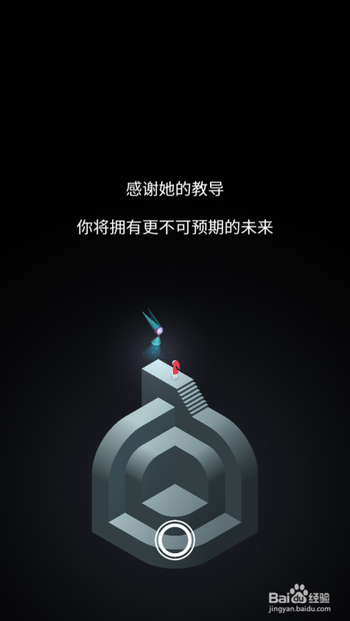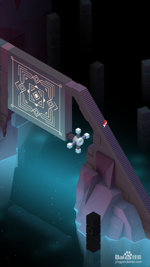 女儿拿出帽子,平台中心升起一道紫色光柱,披发出光斑。随后,光斑被女儿的帽子所接收。女儿终于也可像母亲一样,摸索着纪念碑谷的奥秘,但似乎女儿还小,光斑只有一点点。