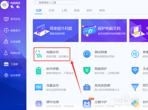 方式二:打开我们的电脑管家,选择东西箱里的电脑诊所