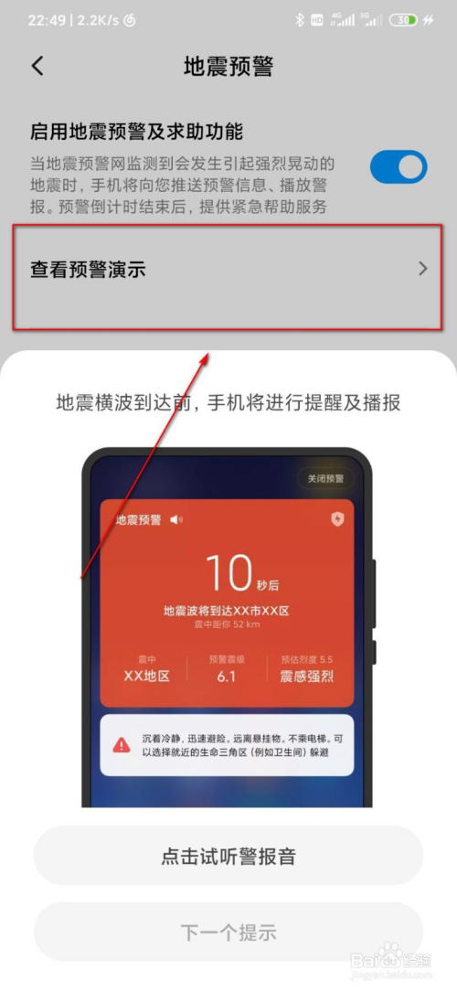 最后点击查看预警演示,可以在里面点击试听警报音。