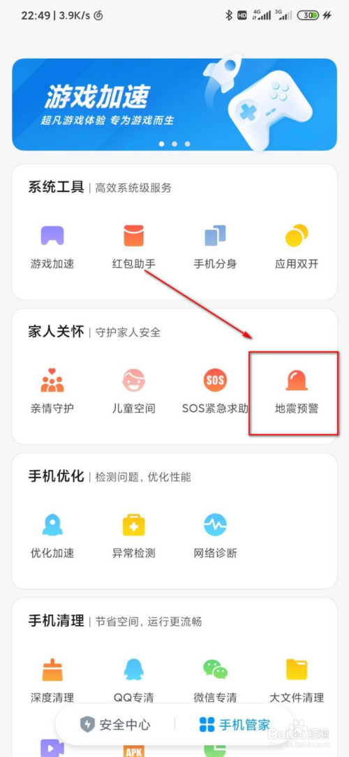 这时我们可以看抵家人关切,点击最右侧地动预警。