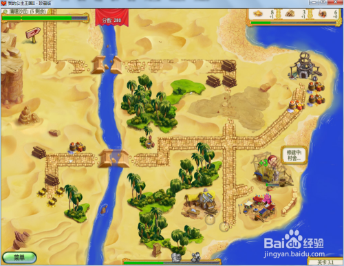 最后将左面的两座石桥修复好,然后在操纵工人收集下方的资本和断根左上方的沙丘,本关的使命就完当作了。