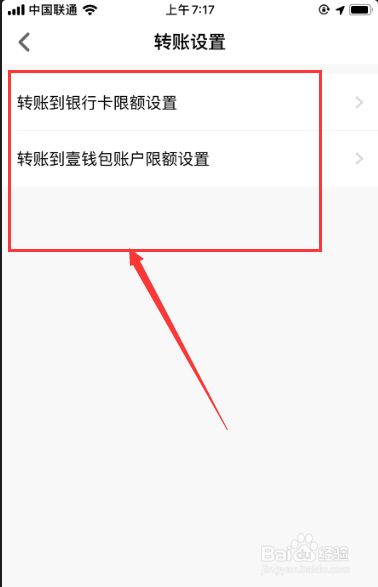 进入设置页面,点击页面中的【转账设置】,如下图红标位置所示