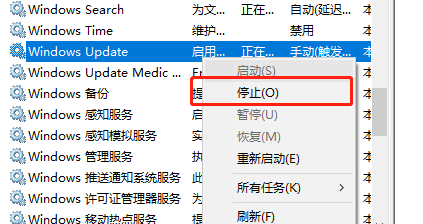 我们点击右键选择“遏制”即可,这样一来,我们再次打开电脑都不会呈现win10主动更新状况。