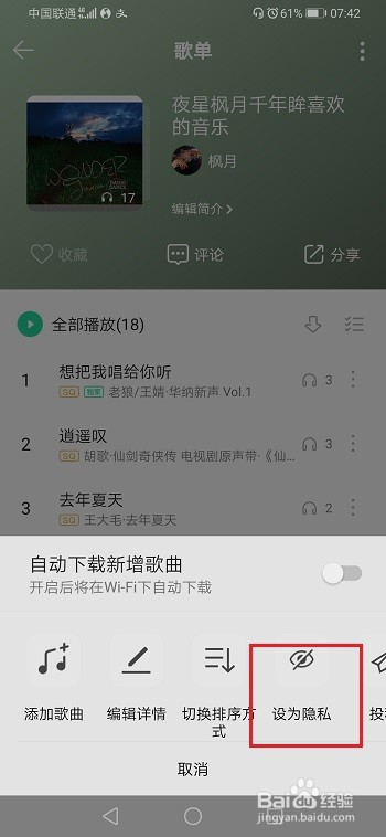 第五步可以看到已经当作功设置隐私歌单了,下面多了一个隐私的图标,如下图所示: