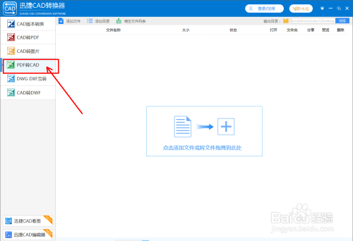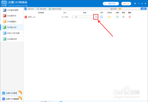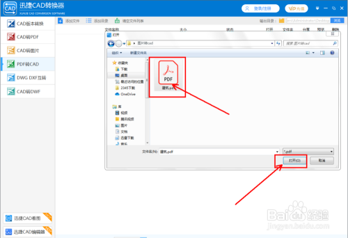 打开CAD转换器,点击【PDF转换CAD】,打开PDF文件并进行转换;