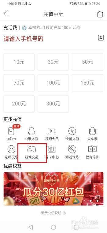 第三步进去充值中间之后,点击游戏买卖,如下图所示: