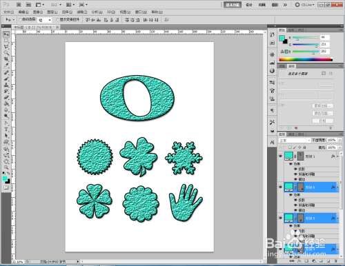 最后,将我们设置好的凹凸结果图层样式拷贝粘贴给别的几个自界说图案即可。