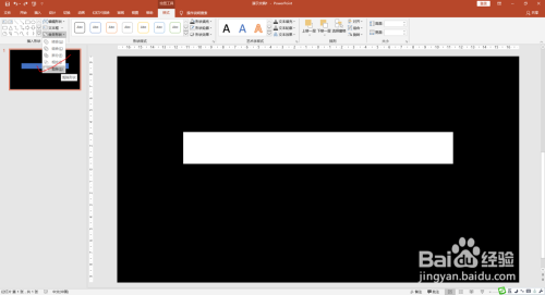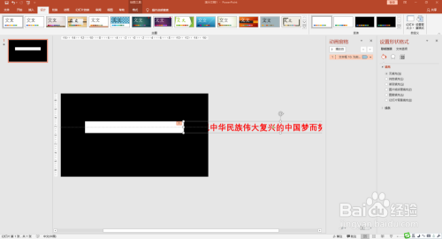 再插入一个矩形,大小恰当,置于幻灯片中心稍靠上位置并居中。