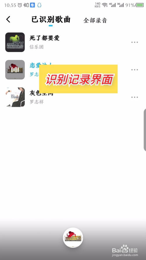 然后就打开了已识别歌曲界面,显示的就是识此外歌曲汗青记实。如图所示