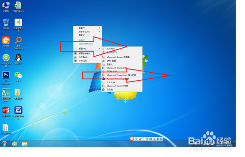 在电脑桌面上,右击鼠标,在弹出的列表中选择【新建】-【新建 Microsoft Office PowerPoint 文稿】,如图。