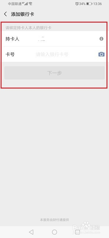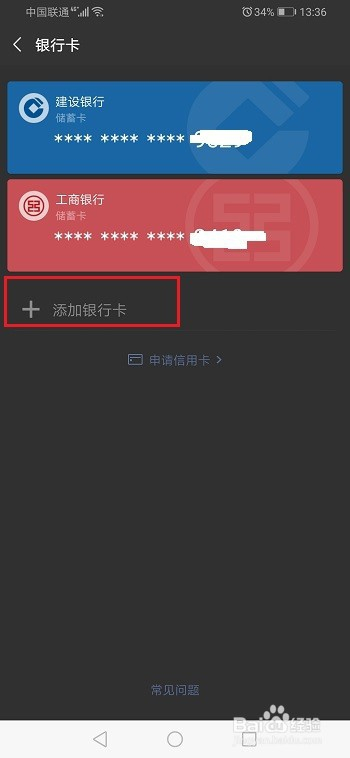 第四步进去银行卡之后,点击添加银行卡,如下图所示: