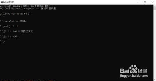 加下来就是建立一个文件夹,好比:我要建立一个中国传统文化的文件夹,可输入md+空格+中国传统文化