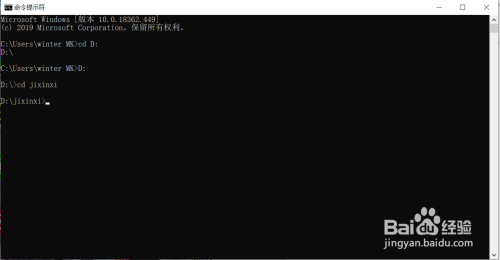 进入D盘后,我们要进入一个文件夹。好比:我要进如jixinxi,可以输入指令