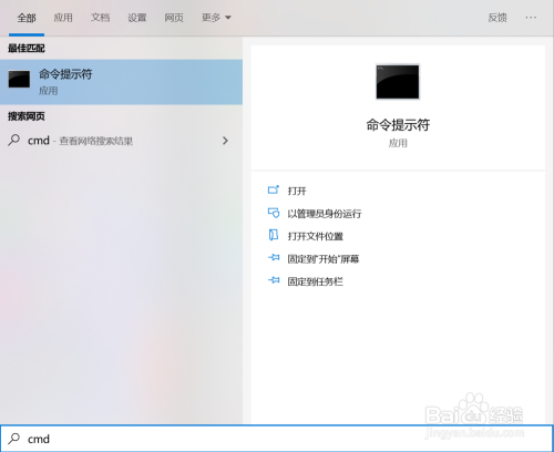 首先,我们先打开号令提醒符,在搜刮中输入“cmd”即可