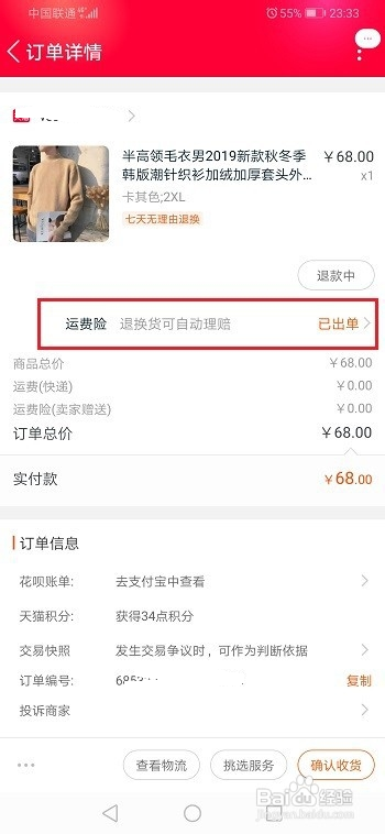 第二步进去全数订单之后,找到赔付运费险的订单,点击进去,如下图所示: