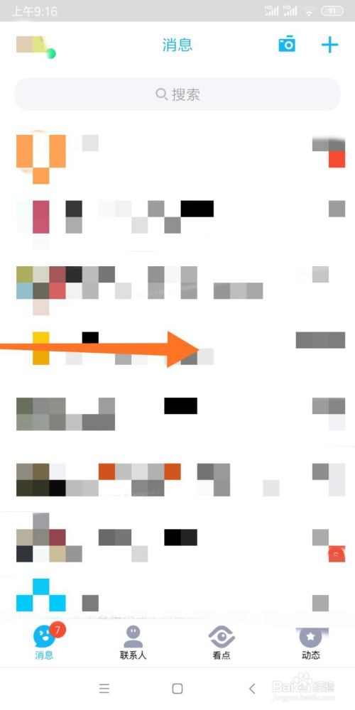 首先,打开qq,将屏幕往右移。